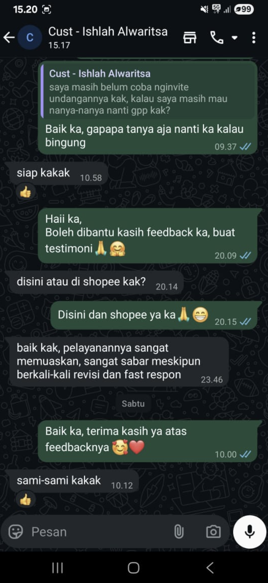 Jika mengalami kesulitan dalam pemesanan jasa undangan digital kami, silahkan kontak kami melalui chat support whatsapp di: 085703399191